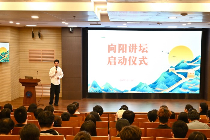 在“向阳讲坛”首期专题讲座中,白天晴以《先出发,再调整姿态》为题,为师生带来一场别开生面的讲座。