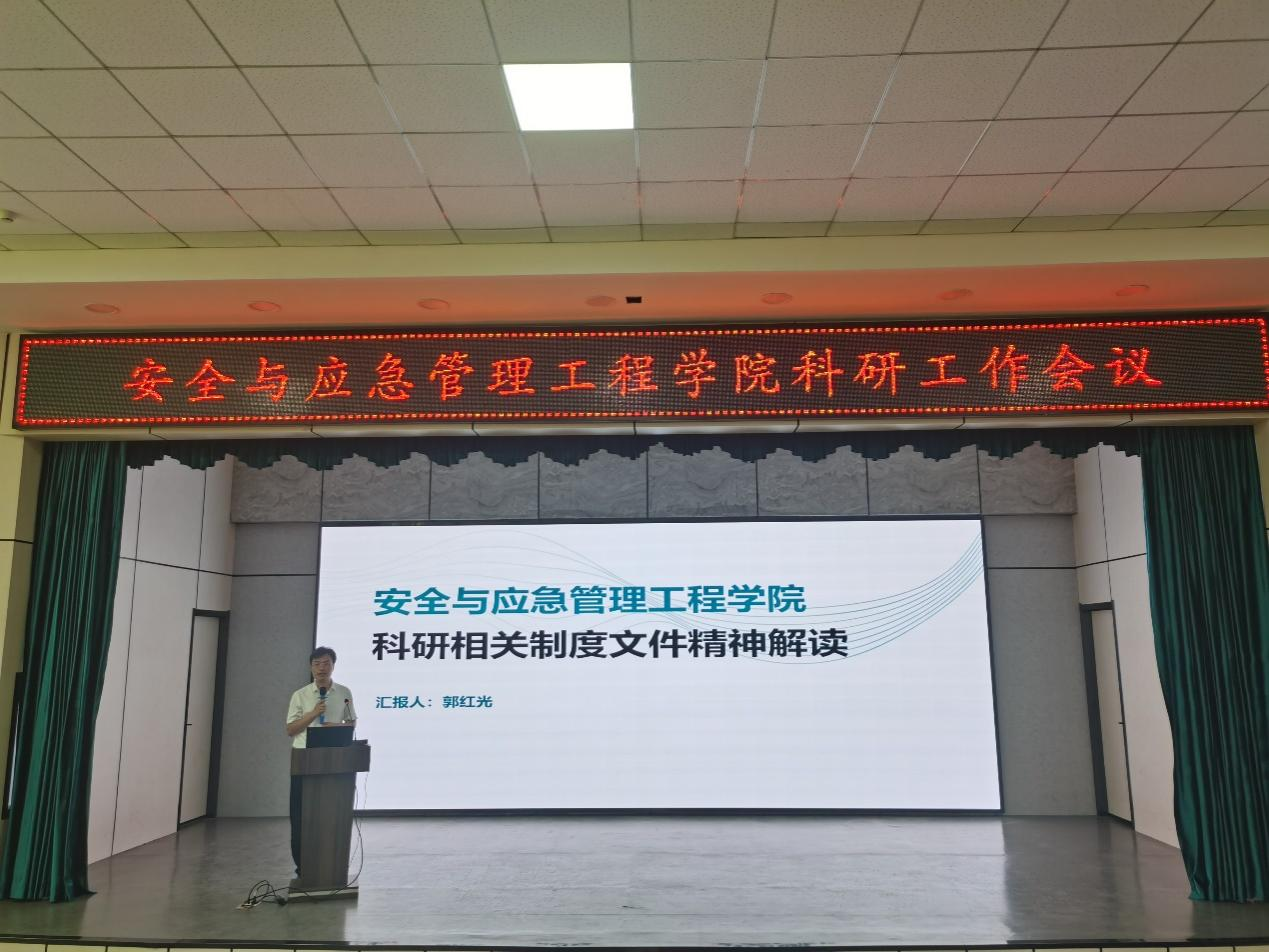 为深入贯彻落实学校科研发展规划要求,进一步整合学科资源、激发创新活力,7月7日,安全学院在学院一楼报告厅召开科研工作会议,学院领导班子、科研团队负责人及全体教职工参会。会议通过成果与经验分享、政策解读、战略研讨,为学院科研工作高质量发展擘画蓝图。