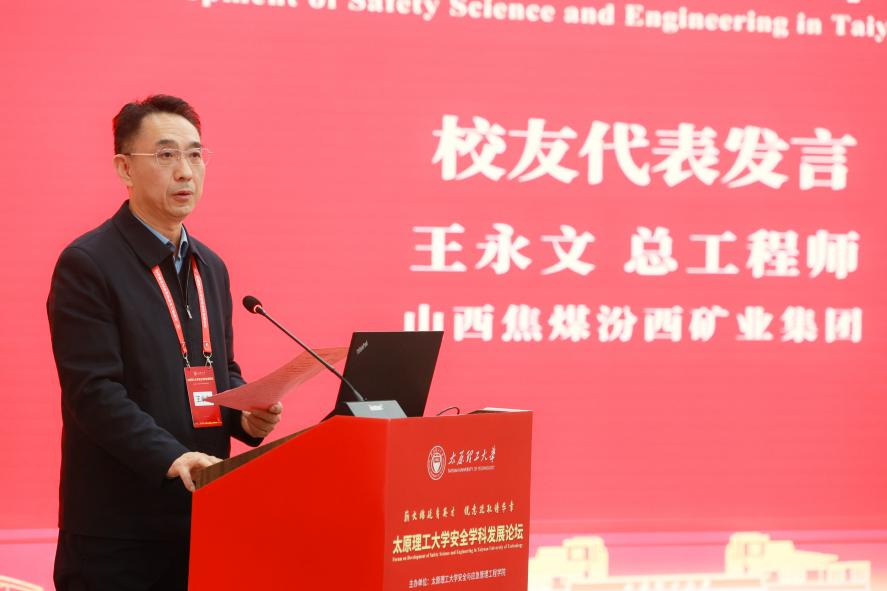 山西焦煤汾西矿业集团总工程师王永文作为安全学院杰出校友代表发言。他深情回顾了在母校的求学时光,表达了对恩师培养的感激之情,并分享了在行业一线的工作体会。他号召广大校友凝心聚力,持续关注和支持母校发展,共同成为学院与业界协同发展的坚实桥梁。