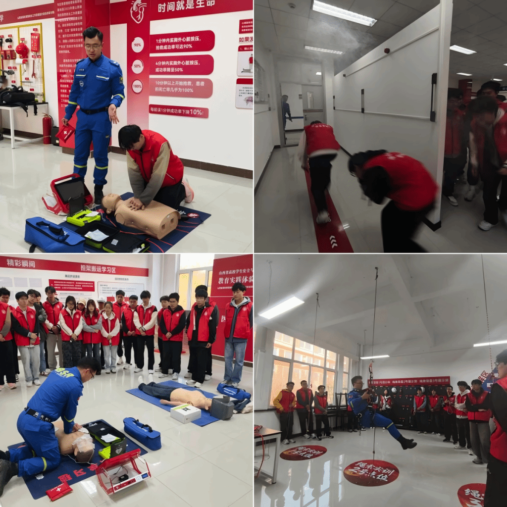 本次培训是学校落实“立德树人根本任务”、深化“三全育人”体系的重要实践,旨在将劳动教育融入学生综合能力培养全过程。校园安全无小事,掌握应急救护技能不仅是守护生命的关键能力,更是新时代大学生应具备的劳动素养与社会担当的生动体现。培训围绕“心肺复苏与AED使用”“海姆立克急救法”“创伤救护”“担架搬运”“消防自救”“烟雾逃生”及“绳索技能”等多个实用模块展开,全面覆盖常见校园突发事件的应对方法,着力提升学生在实际情境中的动手操作与应急处置能力。课程采取“理论讲解+实操训练”相结合的模式,由专业讲师进行手把手指导,确保每位学员在高度仿真的场景中真正掌握关键劳动技能,实现从知识到能力的有效转化。